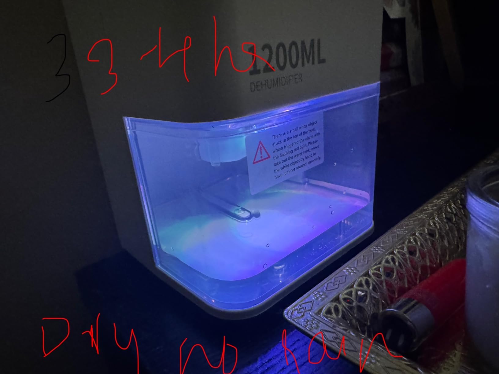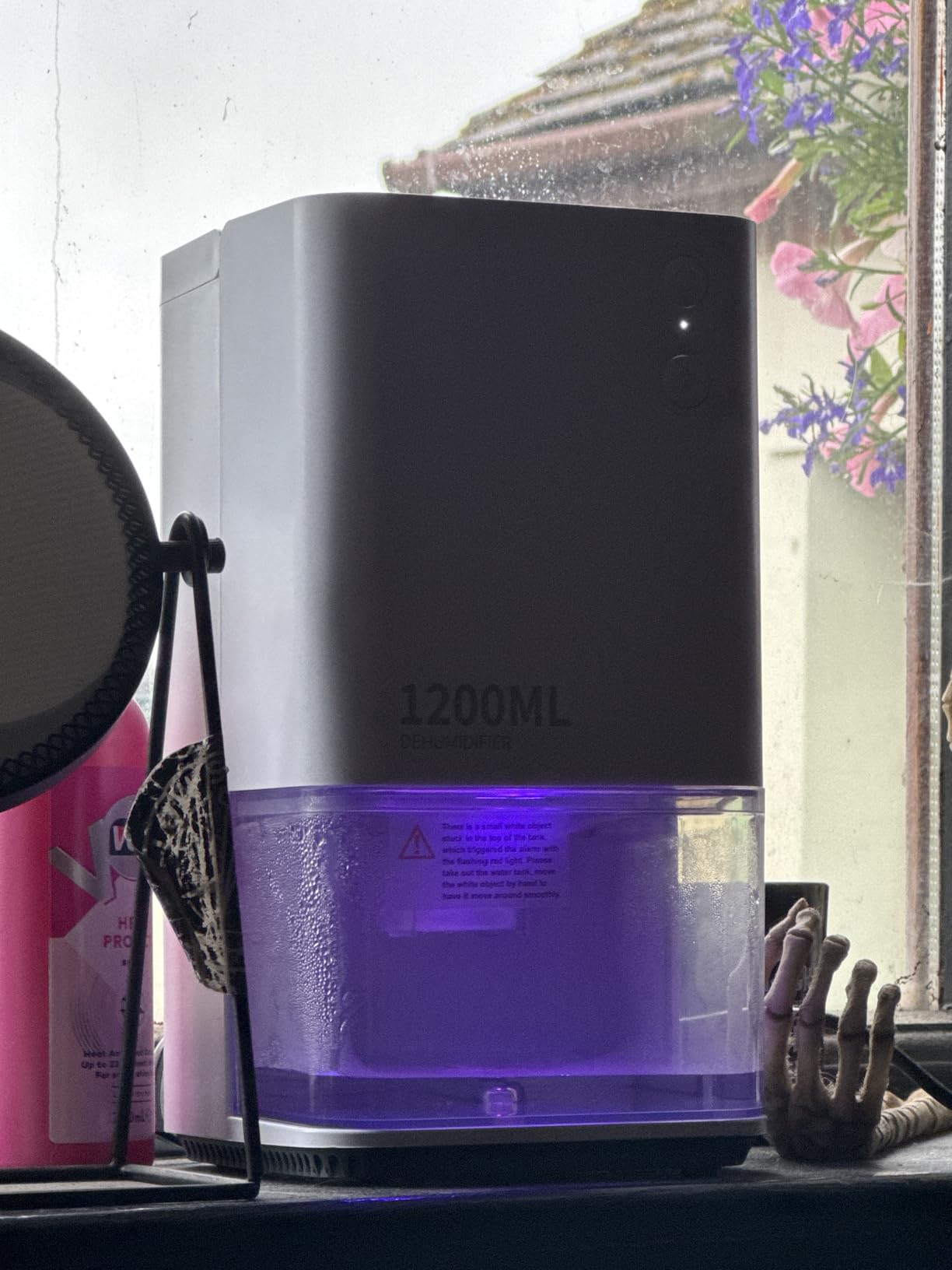 I like the quietness of the dehumidifier. was expecting a little bit more water coming out and but more power. As I have a bay window. The Video was 12 hours later, in flat, with slightly wet clothes drying.