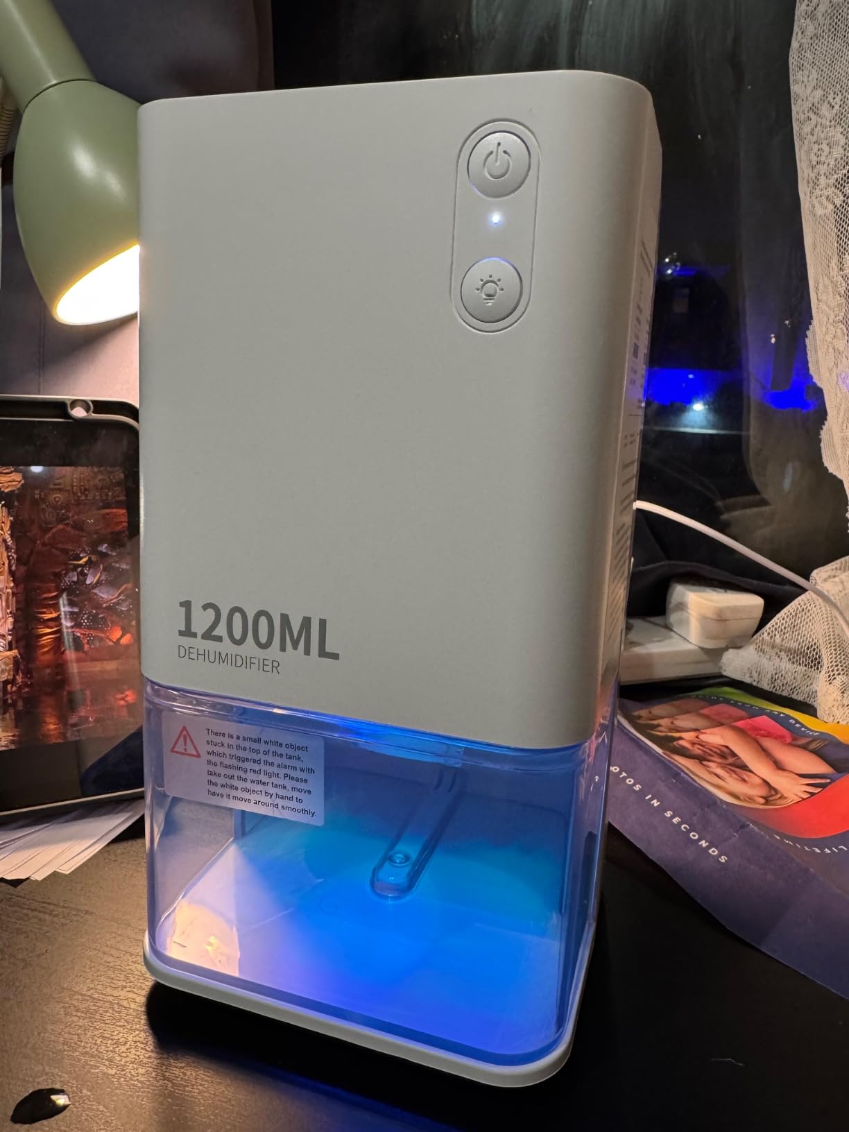 49 reviews for 1200ml Mini Electric Dehumidifier – Ultra Quiet, Auto Shut-Off, 7-Color LED for Bedroom, Wardrobe, Bathroom, RV, White
