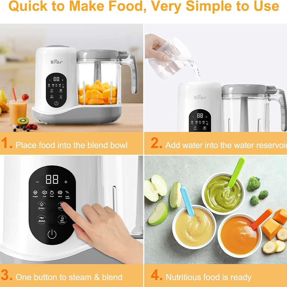 💖【All in One】Bear baby food maker is supplement steamer and blender in one device with no plastic basket required. No need to move ingredients, no more separate equipment. The unique steaming cycle locks in nutrients, flavors and vitamins ensuring your little one benefits from tasty and healthy homemade food.