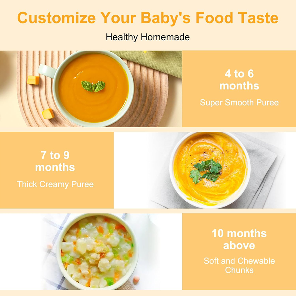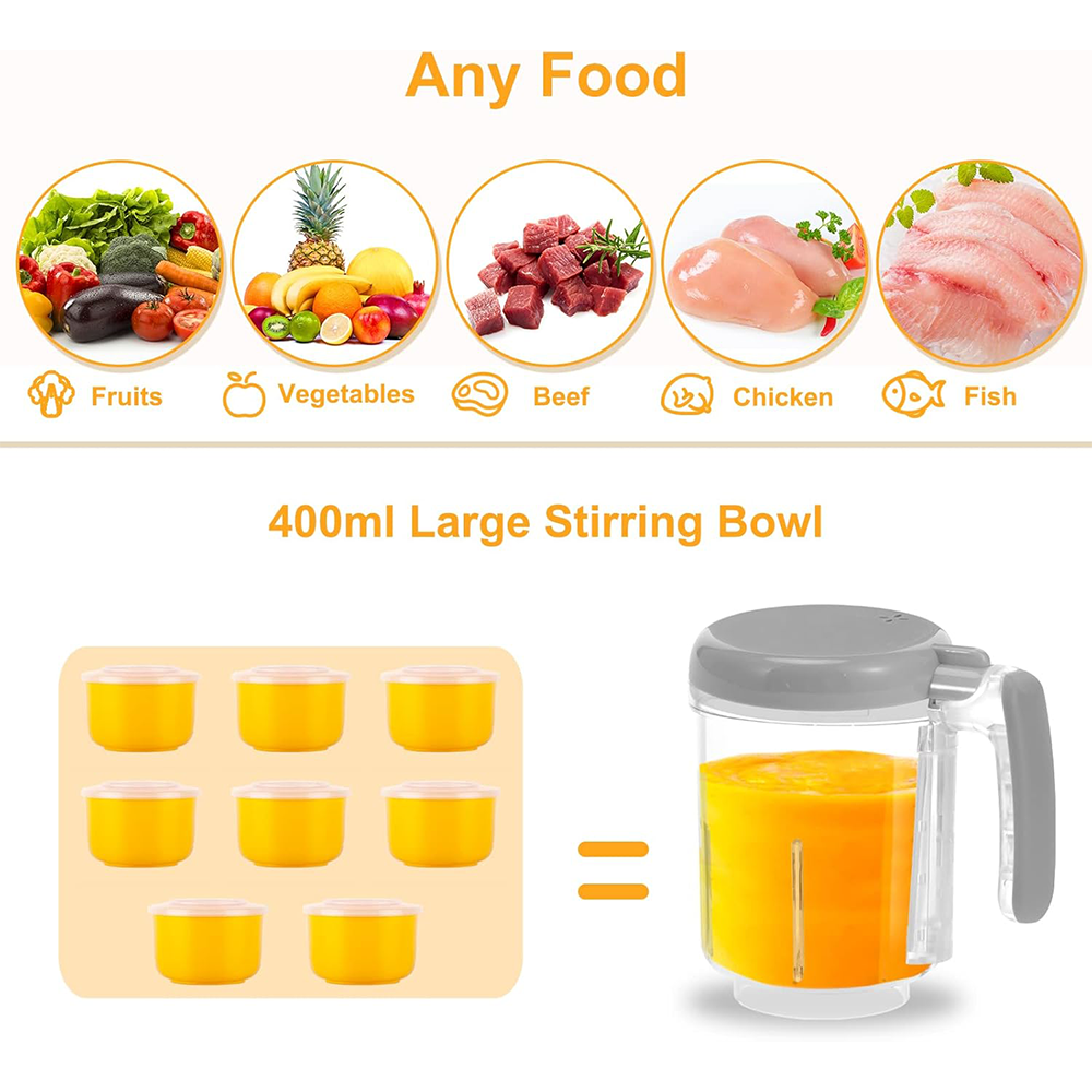 💖【Healthy & Safe】Baby food steamer and blender passed FDA/UL certification. Blender cup made from Tritan material. BPA/lead/phthalates/odor/latex/petroleum free. Its water shortage reminder function will remind you when baby steamer is low on water. 👉NOTE: Baby food maker has a safety lock design, it can only be powered on when the blender cup lid properly installed with the blender cup. Meanwhile, the blender cup should be properly installed with the base.