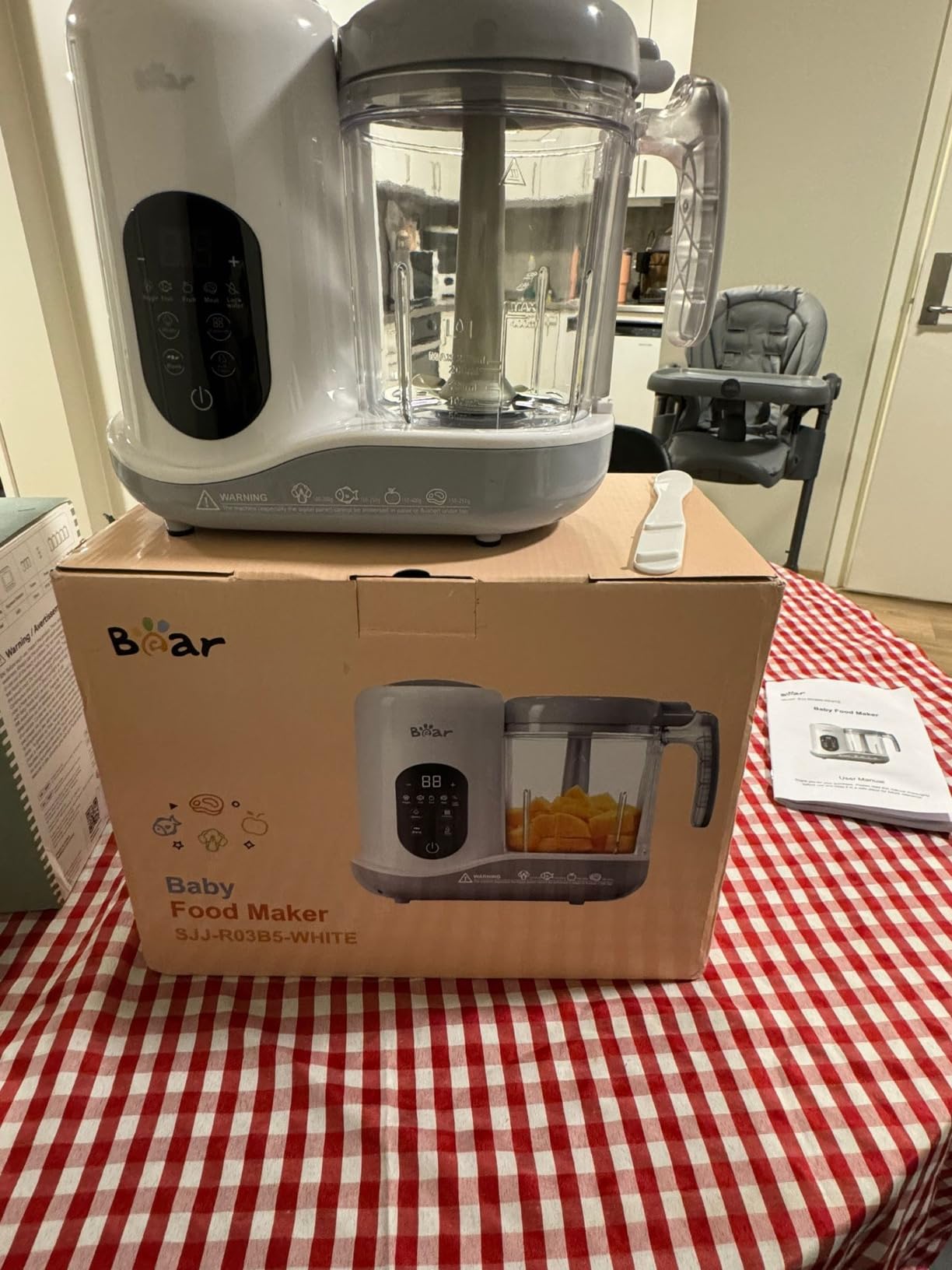 I ordered this Bar baby food maker for my 6 months old baby as we started solids, you just add water to the steamer part , chop the raw food and add it to the blender part , turn on timer and then wait for the magic to work , it’s absolutely amazing , Easy to use, clean and light weight , I totally recommend it ♥️