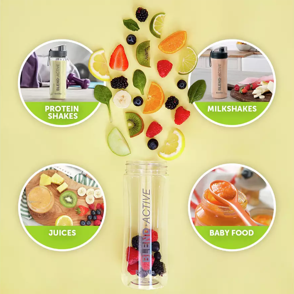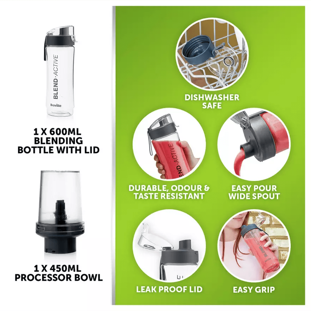 • 2 attachments including: 600ml sports bottle and 450ml food processor.