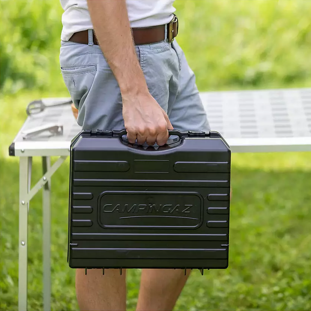 A simple to use, compact stove, ideal for many leisure activities. Features include Piezo ignition, stainless-steel cartridge cover and a fixed, elevated pan support to prevent overheating. A cartridge locking system will cut gas flow as well as eject the cartridge when not in use. This stove is powered by Campingaz CP250 IsoButane gas cartridges designed to operate in lower temperatures. A hard plastic carry case is provided for transport and storage. Safe and simple to operate. Integrated safety features including raised pan supports and cartridge locking system. Wide, fixed enameled pan support for stable, stove top cooking. Complies to European Safety Standard EN 17476:2021.