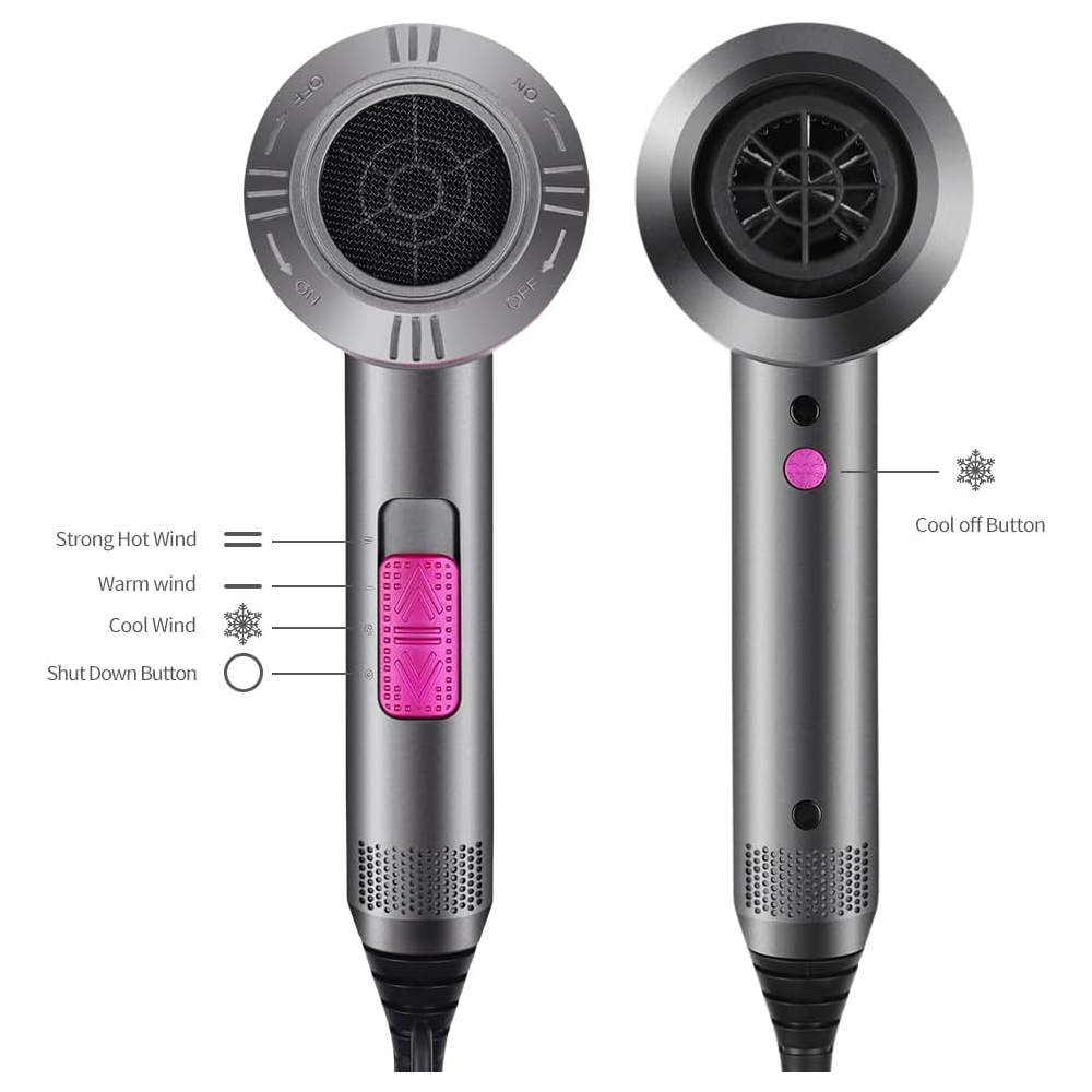 【Lower Radiation】The hair dryers has 3 wind speed and hot air wind and cold air wind control function with one cool off buton. a removelable back cover for easily dust cleaning and a hook for hanging on the wall. It also have a overheated and low electro magnetic fiel protection. Low magnetic wave structure saves energy, has a low radiation than similar hair dryer