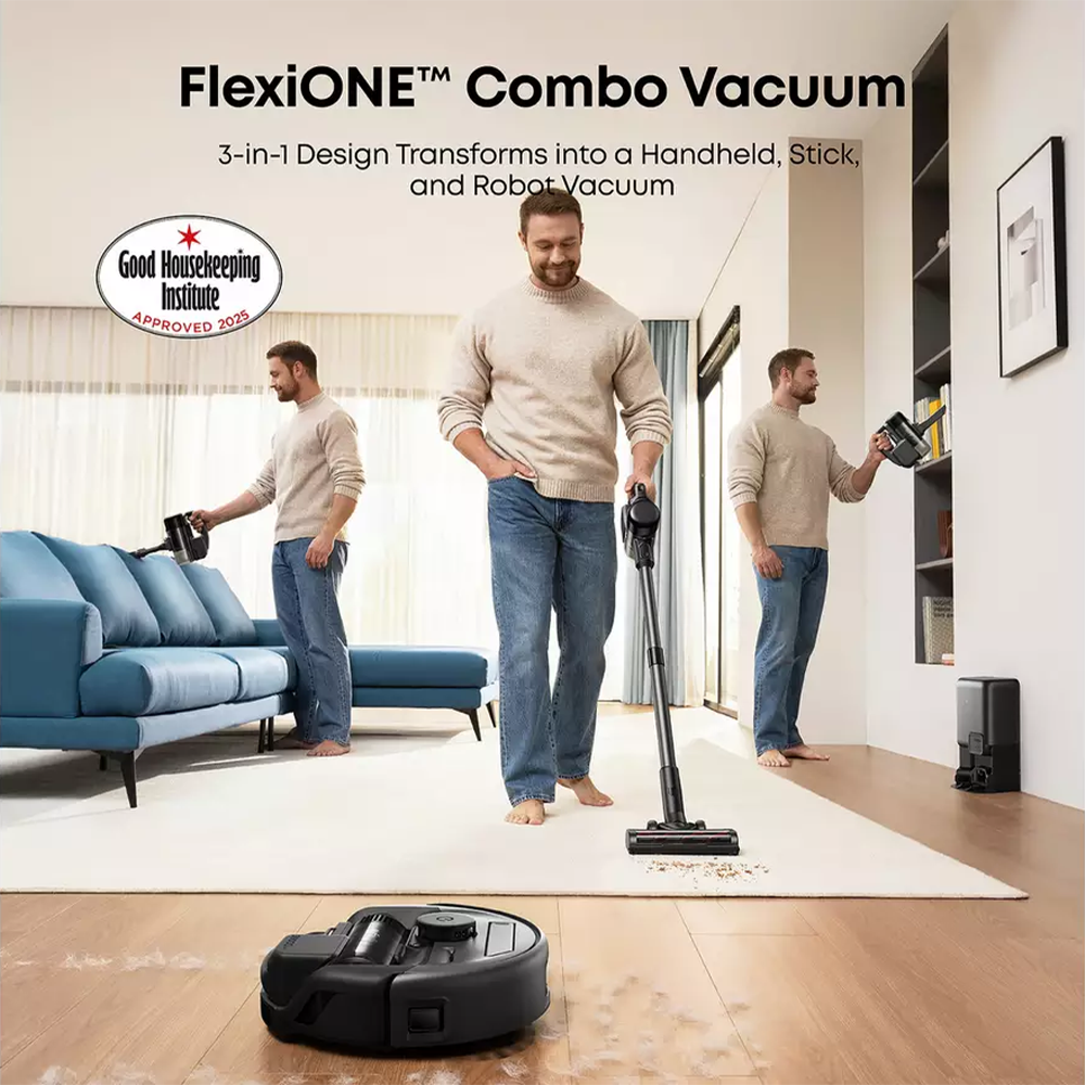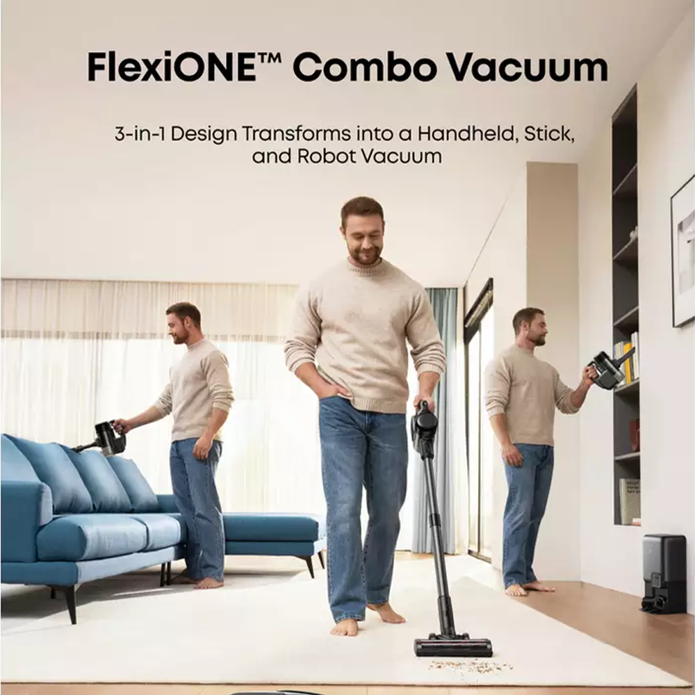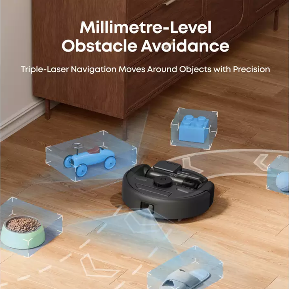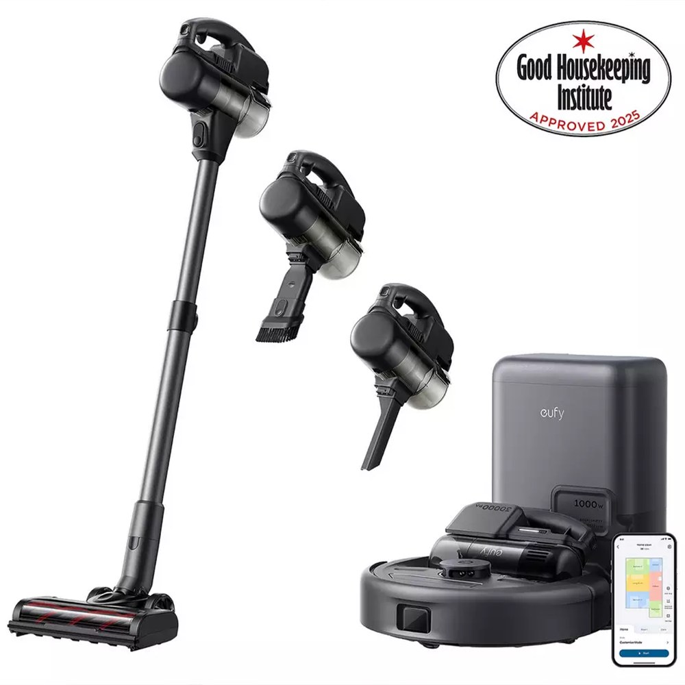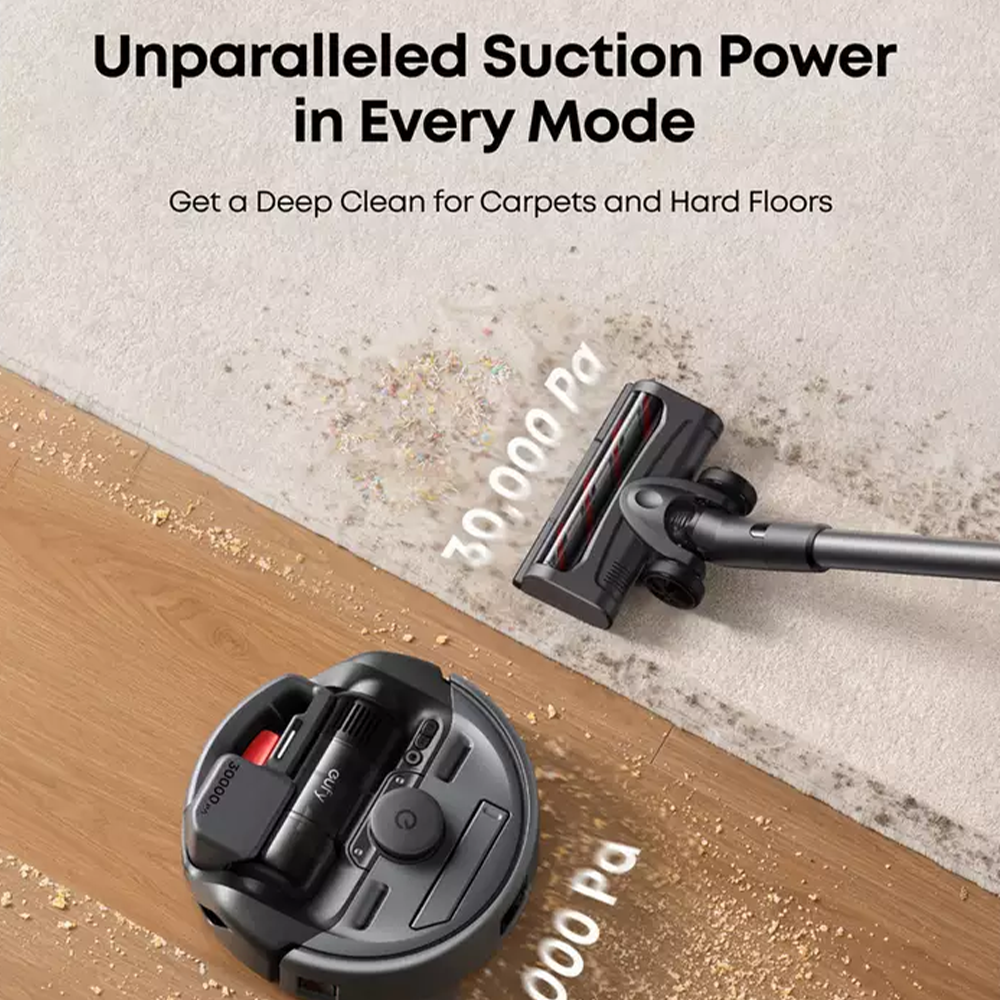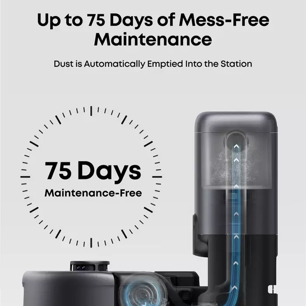 Seamlessly switch between a handheld, stick, and robot vacuum — all in a single device. The 3-in-1 design is ideal for cleaning floors, stairs, corners, and more surfaces around your home. It tackles dirt, dust, and debris with up to 30,000 Pa of suction for handheld cleaning and 8,000 Pa in robot vacuum mode to ensure a deep clean of whatever surface you're cleaning. AeroTurbo filtration uses five advanced cyclone structures to capture up to 99.7% of particles as small as 0.3 microns for a cleaner, healthier home environment. eufy 3-in-1 E20 uses LiDAR for precision navigation, dual laser sensors for real-time obstacle detection, & 129 degree ultra-wide front scanning for smarter edge cleaning. It smoothly navigates around obstacles over 15mm in size. You don't even need to empty eufy 3in1 E20 at the end of a clean. When it is docked at the Auto-Empty Station, debris is automatically emptied into a 3L dust bag that only needs replacing every 75 days, saving you from taking regular trips to the bin. AeroTurbo Five-Stage Filtration: Using five advanced cyclone structures, it can capture up to 99.7% of particles as small as 0.3 microns, including bacteria, pollen, mites, hair, fleas for a cleaner, healthier home environment. Floor suitability: