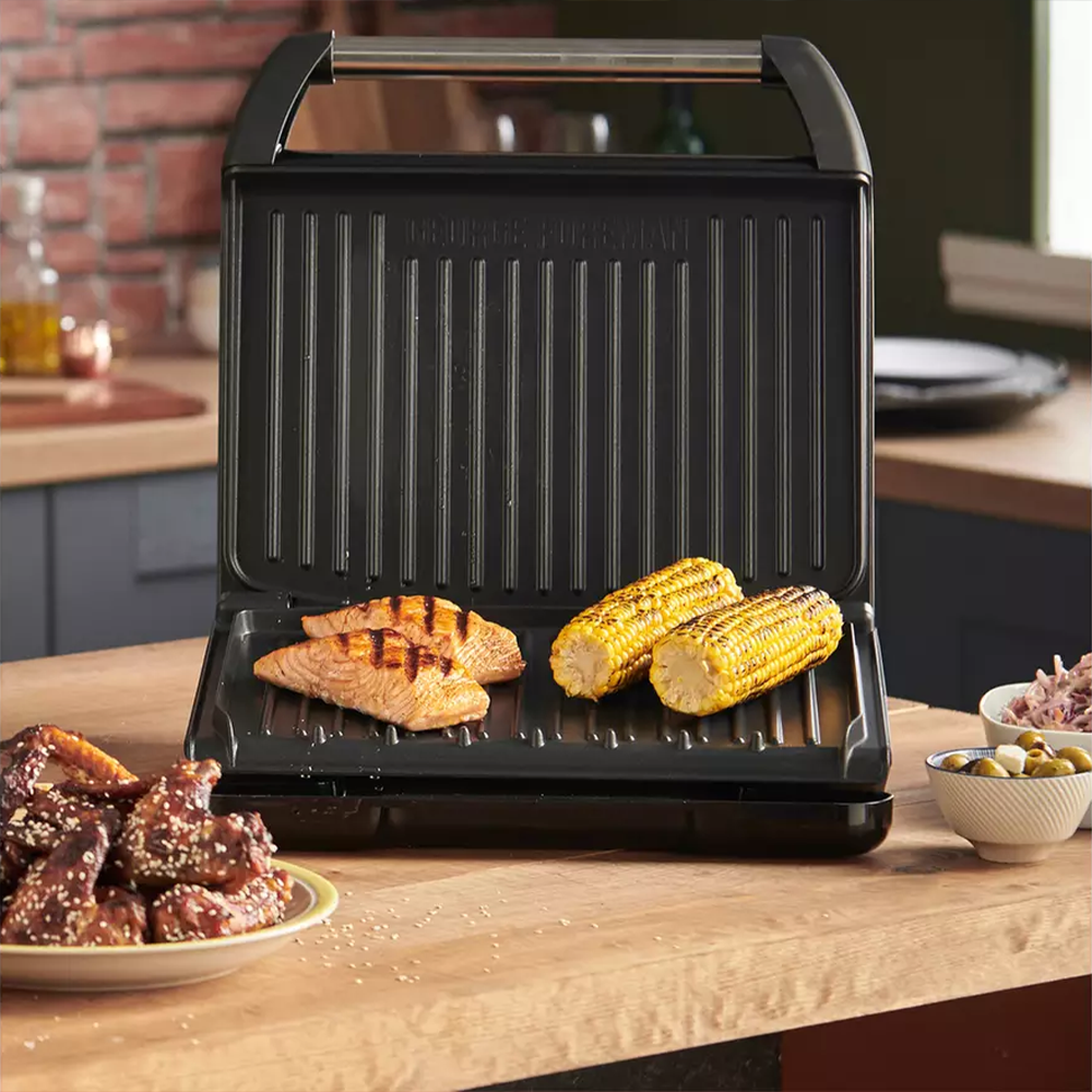 In a sleek, classic black, your George Foreman grill will not only make an impact on your food but also in your kitchen. Packed with a new design, improved features and a whole spectrum of cooking opportunities, this Large Steel Grill will benefit your lifestyle by making delicious meals quickly and easily, with just the close of a lid.