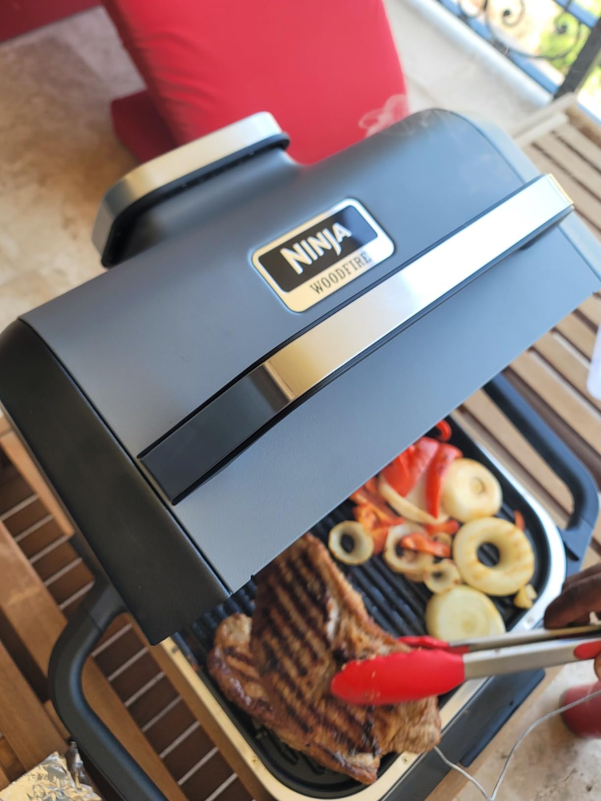 My husband absolutely loves his Ninja Woodfire Grill! We chose this one because our apartment complex only allows electric grills, and it has been the perfect solution. It gives food an amazing woodfire flavor while still being electric and safe for our patio. He uses it all the time; for grilling, smoking, and even air frying.