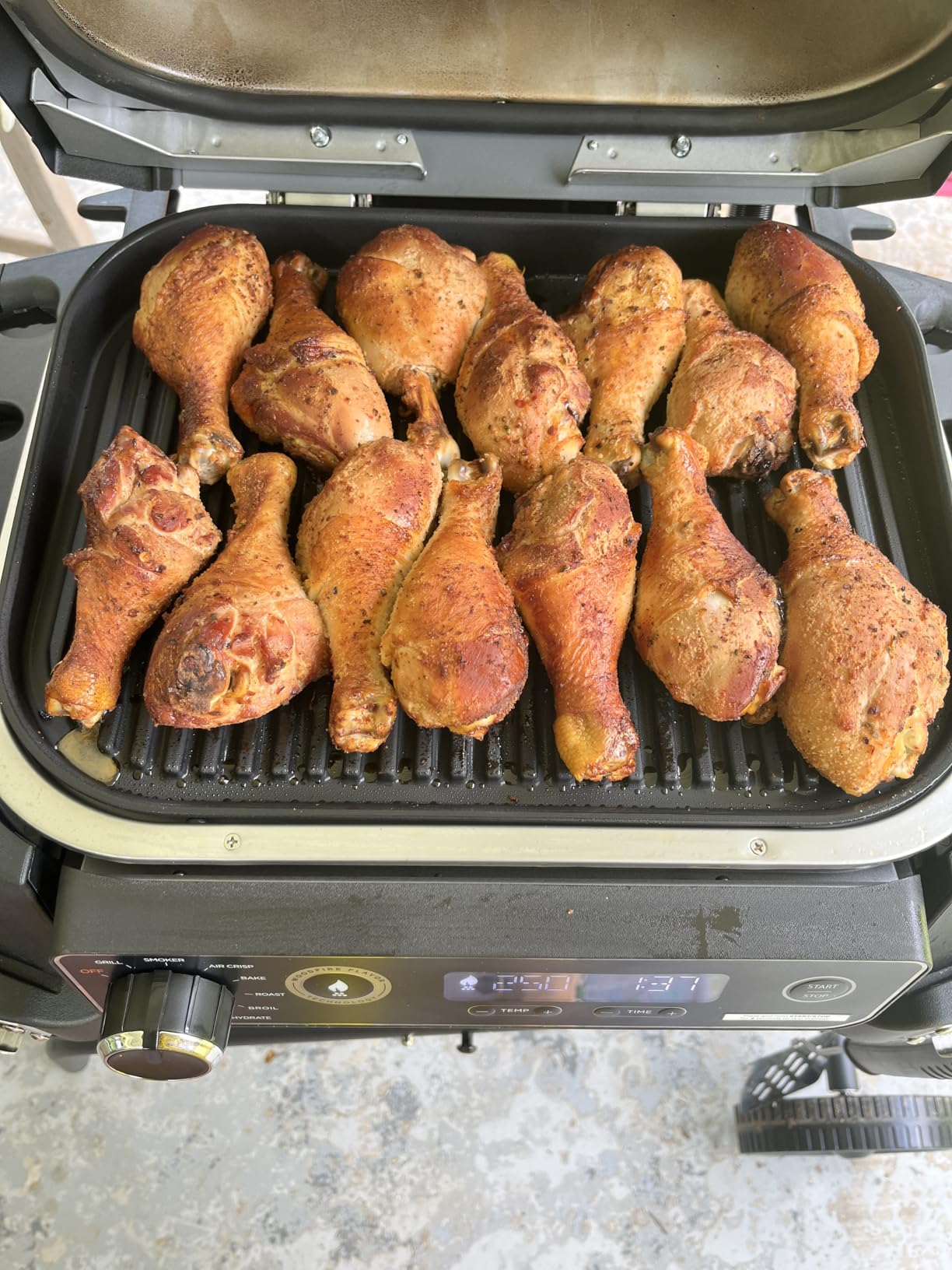 A couple of my friends have a Ninja grill…not the smoker version. They swear by it. Since I already have an electric smoker, a portable pizza oven, an Oklahoma Joe Longhorn combo (offset smoker, charcoal grill, propane grill, and side burner), and a 28” Blackstone flat top griddle